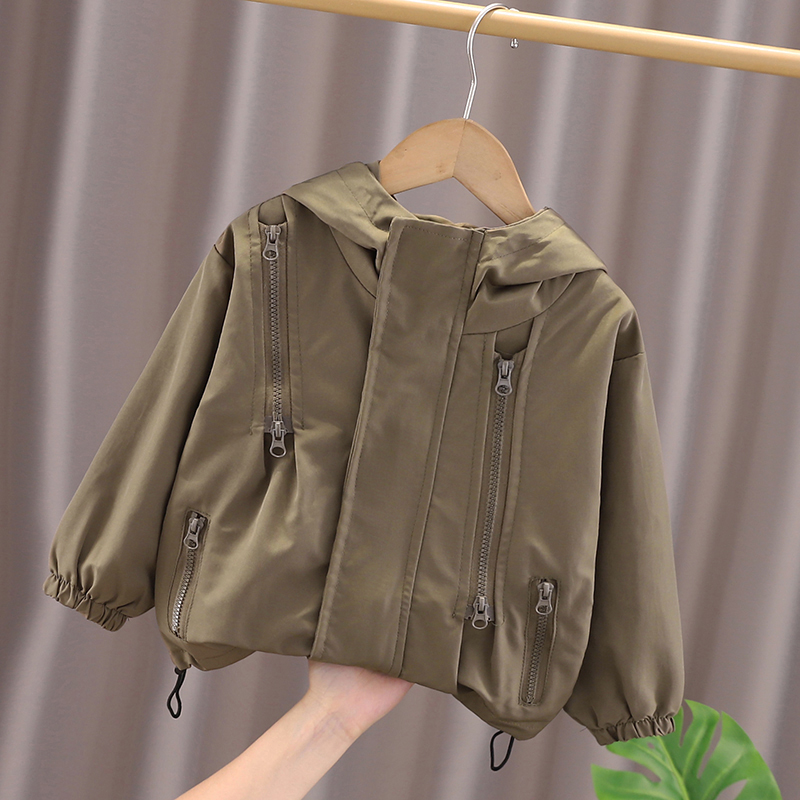 男童风衣外套2025春秋儿童休闲冲锋衣小童宝宝洋气纯色夹克连帽衫