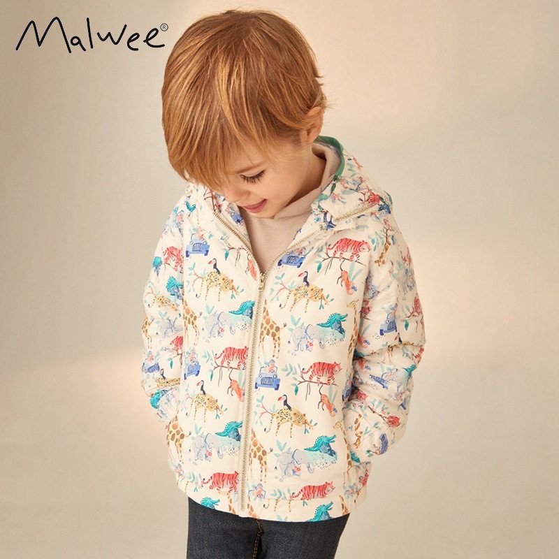 跨境malwee男童风衣外套秋冬新款欧美中小童连帽长袖拉链衫儿童装