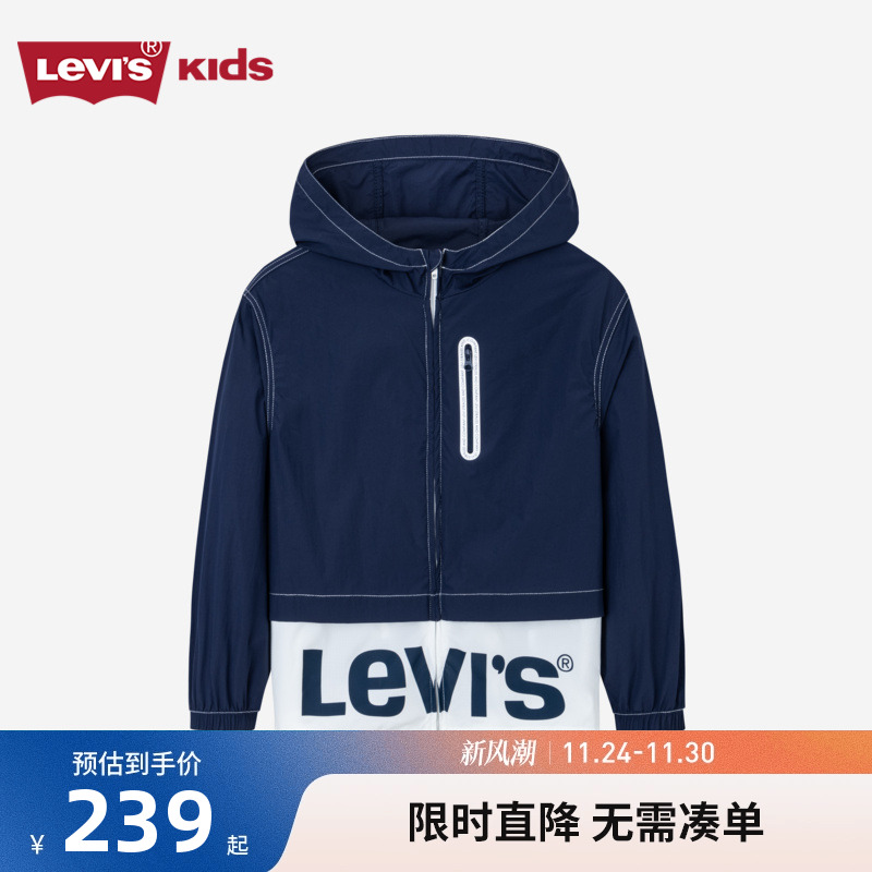 Levi's李维斯童装儿童连帽开襟皮肤衣2025夏季新款男童风衣外套潮
