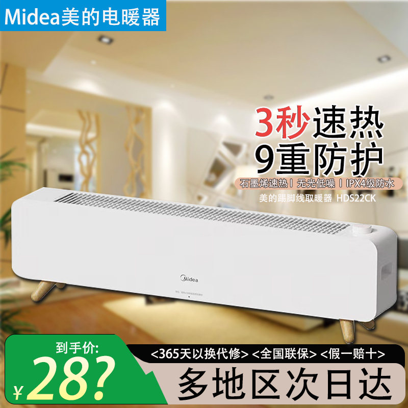 美的踢脚线取暖器石墨烯暖风机语音加湿地暖电暖气2025年新款