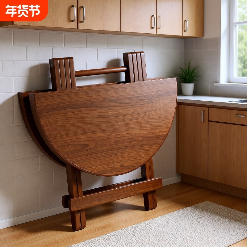 折叠桌餐桌家用实木小户型简约桌子吃饭厨房靠墙小型轻便简易圆桌