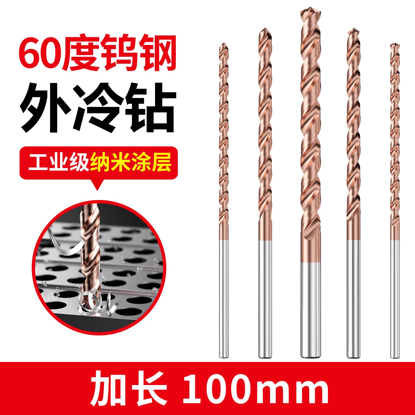 加长100mm 钨钢钻头 合金钻头 超硬涂层高硬度不锈钢麻花钻头