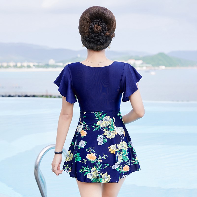 泳衣女2021新款中老年妈妈款保守遮肚显瘦连体游泳衣大码温泉泳装