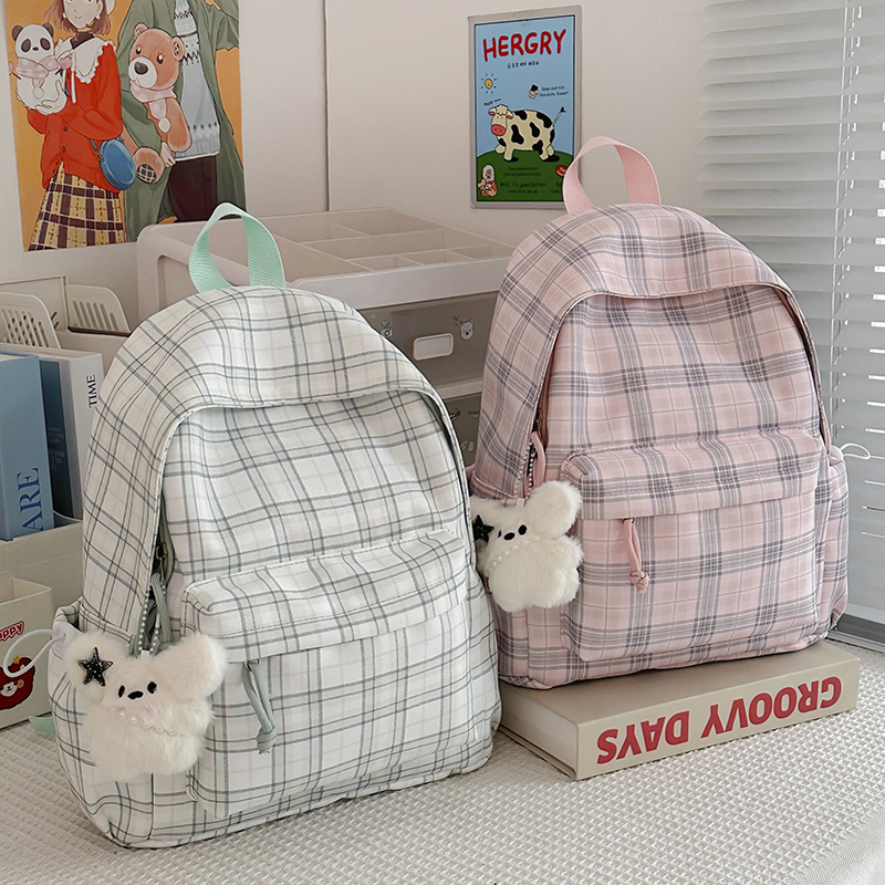 日系可爱甜妹少女迷你双肩包女韩版小清新格子背包轻便旅游小书包