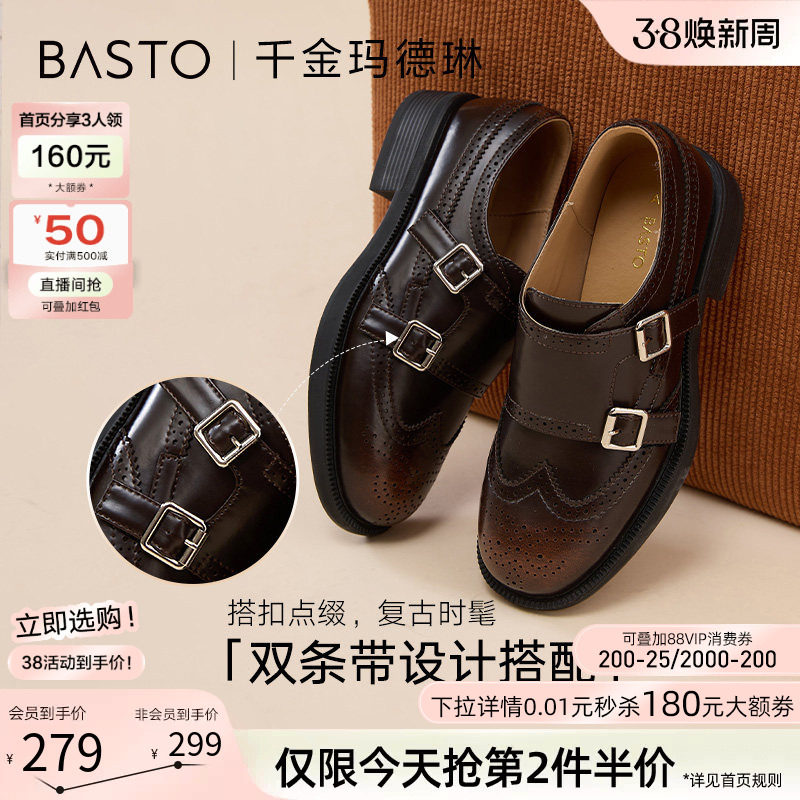百思图26春新款英伦风布洛克牛津乐福鞋皮鞋孟克鞋女单鞋D3836AM6