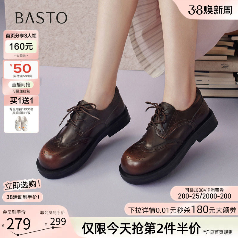 百思图26春新款英伦风雕花布洛克牛津鞋皮鞋乐福鞋女单鞋D3833AM6
