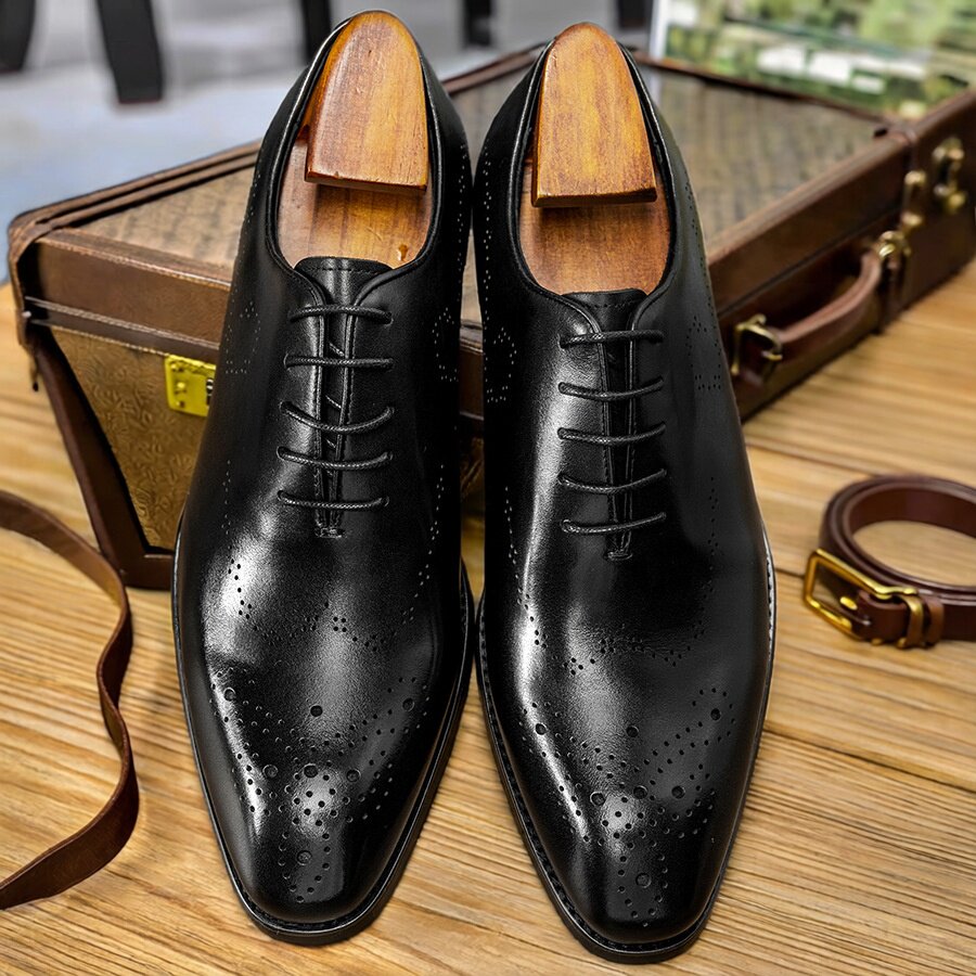 拙履【璇玑】牛皮布洛克牛津鞋Oxford手工固特异系带商务正装皮鞋