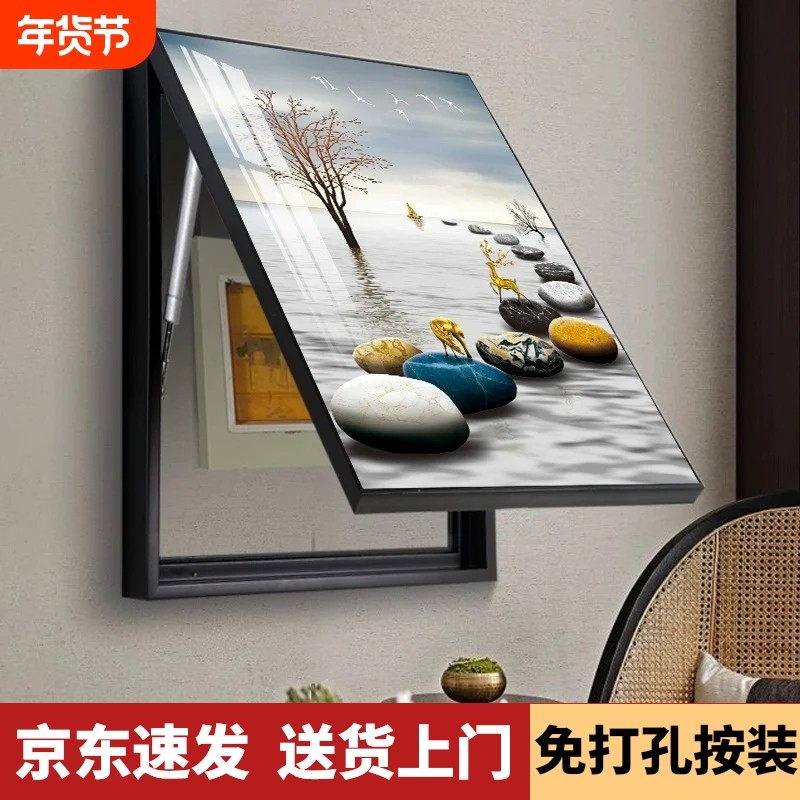 轻奢电表箱装饰画免打孔遮挡配电箱多媒体盒电闸箱开关盒餐厅挂画
