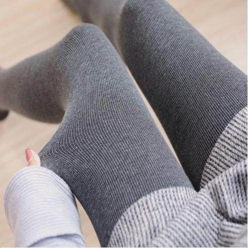 完美记忆打底裤冬女深灰色外穿压力瘦腿加厚黑色加绒连裤袜竖条纹