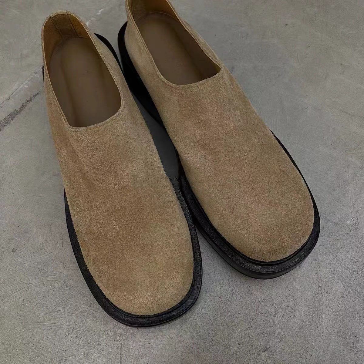 韩版2025年秋冬新款圆头防水台一脚蹬真皮深口单鞋小众设计手工鞋