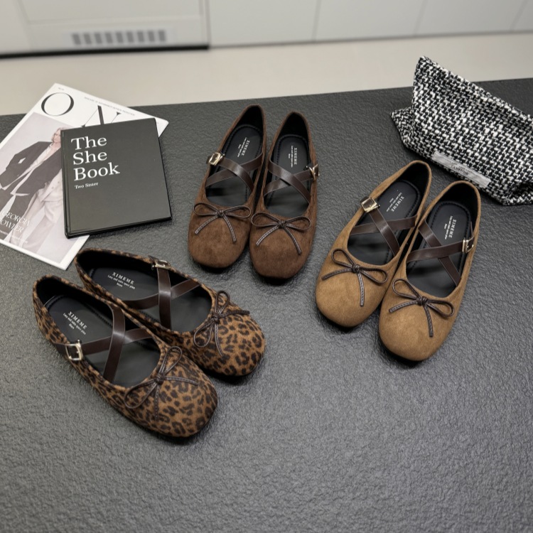 韩版圆头浅口鞋绒面芭蕾舞单鞋2025舒适扣带玛丽珍平底晚晚鞋瓢鞋
