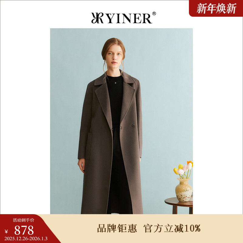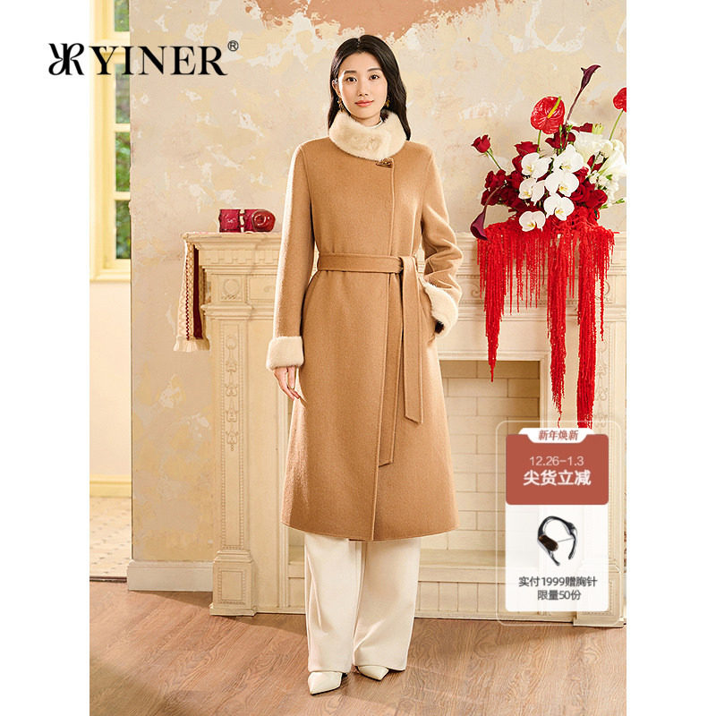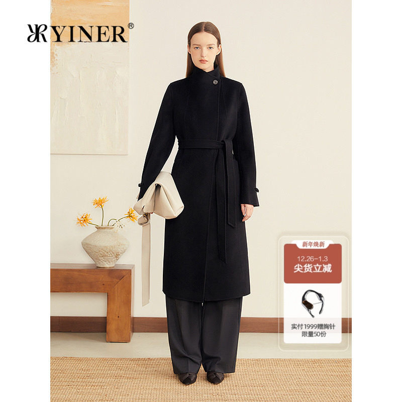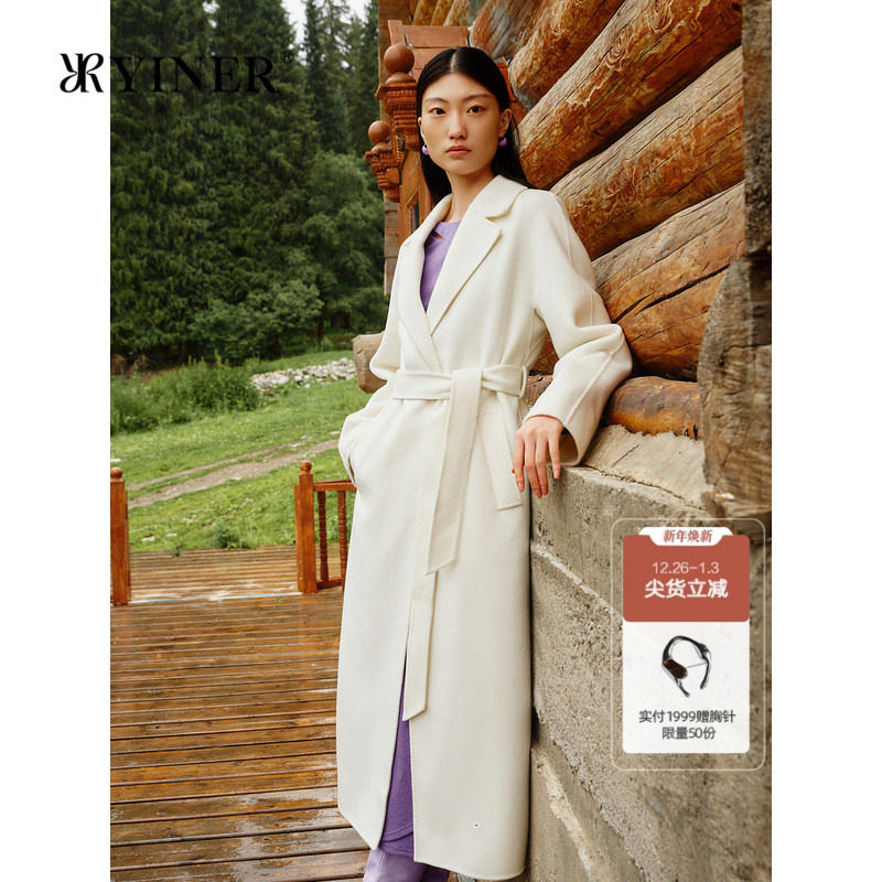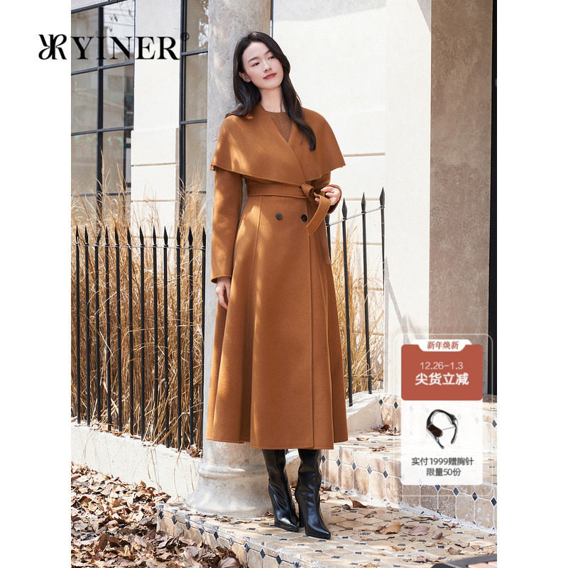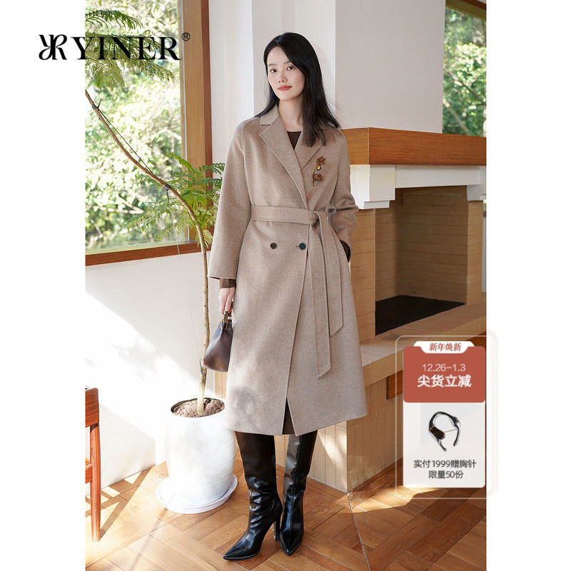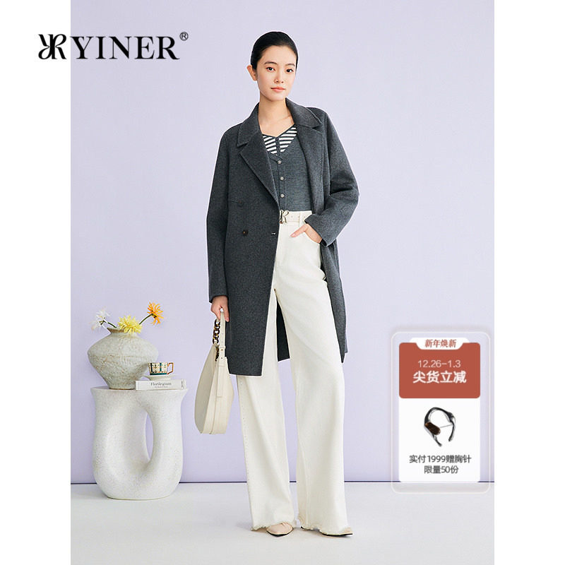 【绵羊毛+山羊绒】YINER音儿女装冬季双面毛呢大衣长款外套