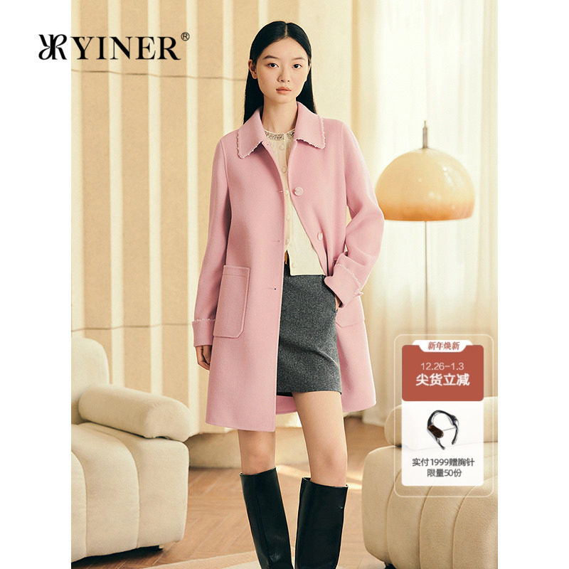 【100美丽诺羊毛】YINER音儿专选女装冬季时尚双面毛呢大衣外套