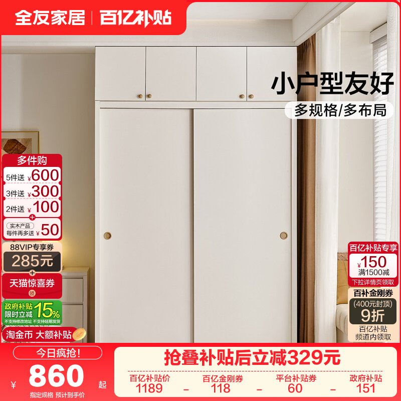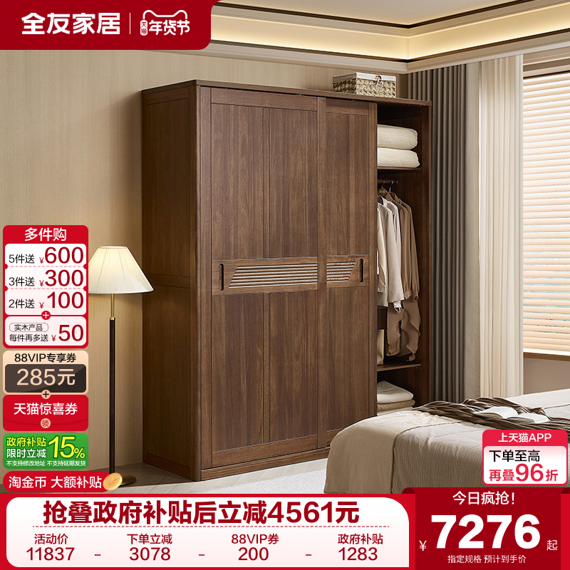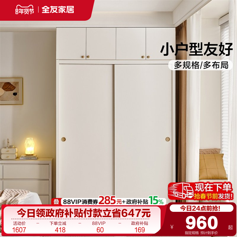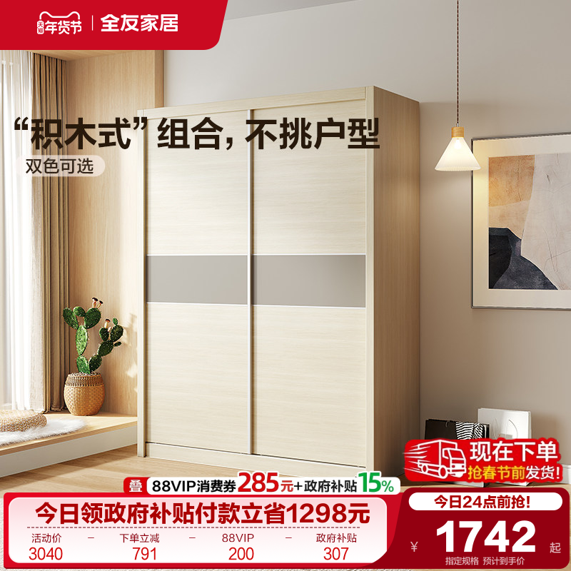 政府补贴全友家居新款2025年爆款推拉门衣柜家用卧室储物收纳衣橱