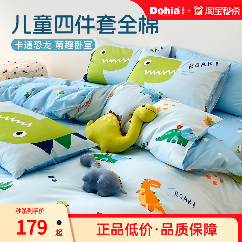 多喜爱卡通四件套纯棉床笠床上用品恐龙被罩床单被套儿童床品男孩