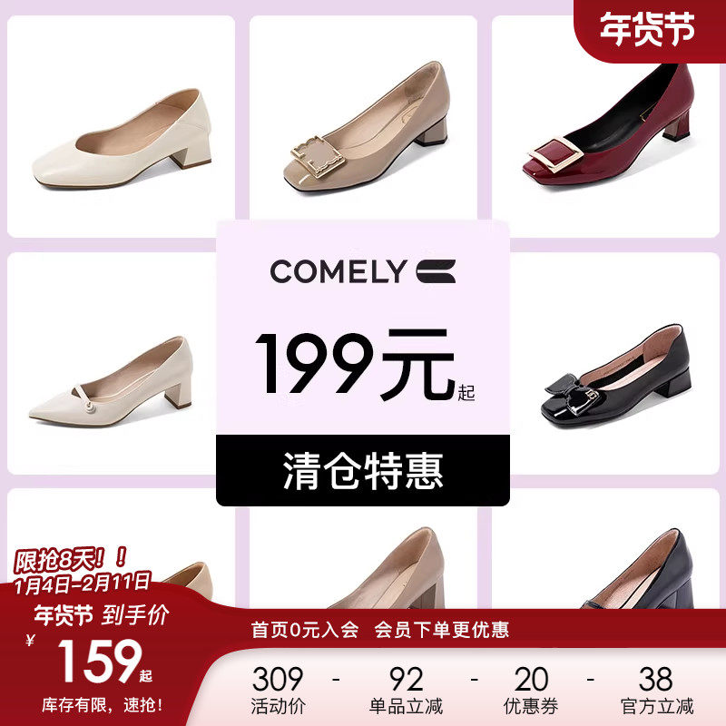 康莉comely浅口尖头粗跟单鞋女方头通勤中跟鞋 159元起不定时更新