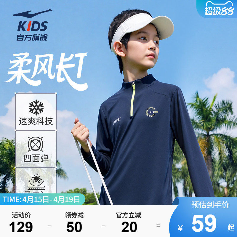 特步童装2026年圆领上衣中大童户外打底衫男大童速干运动长袖t恤