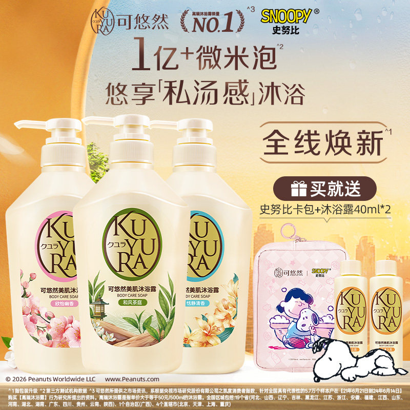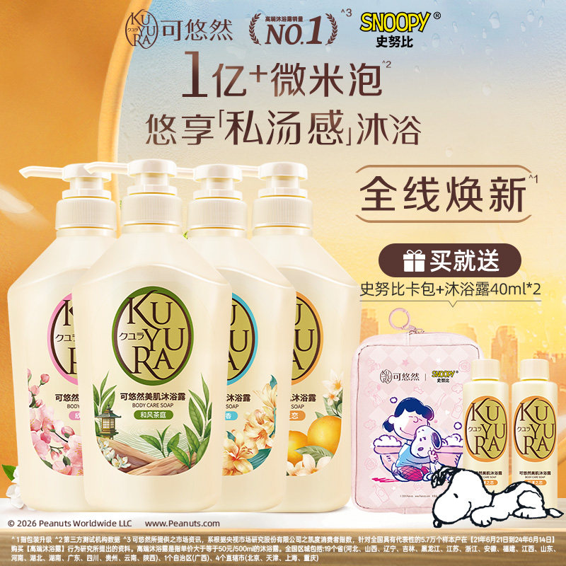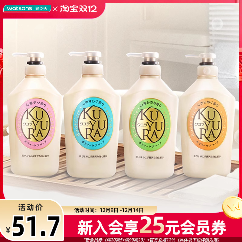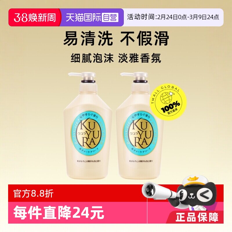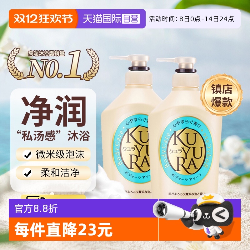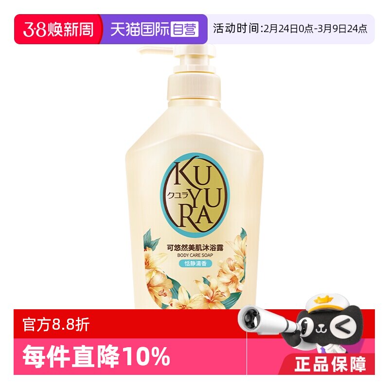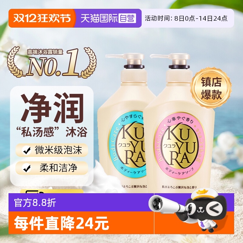 日本kuyur可悠然美肌男女士家庭装嫩白保湿沐浴乳沐浴露550ml