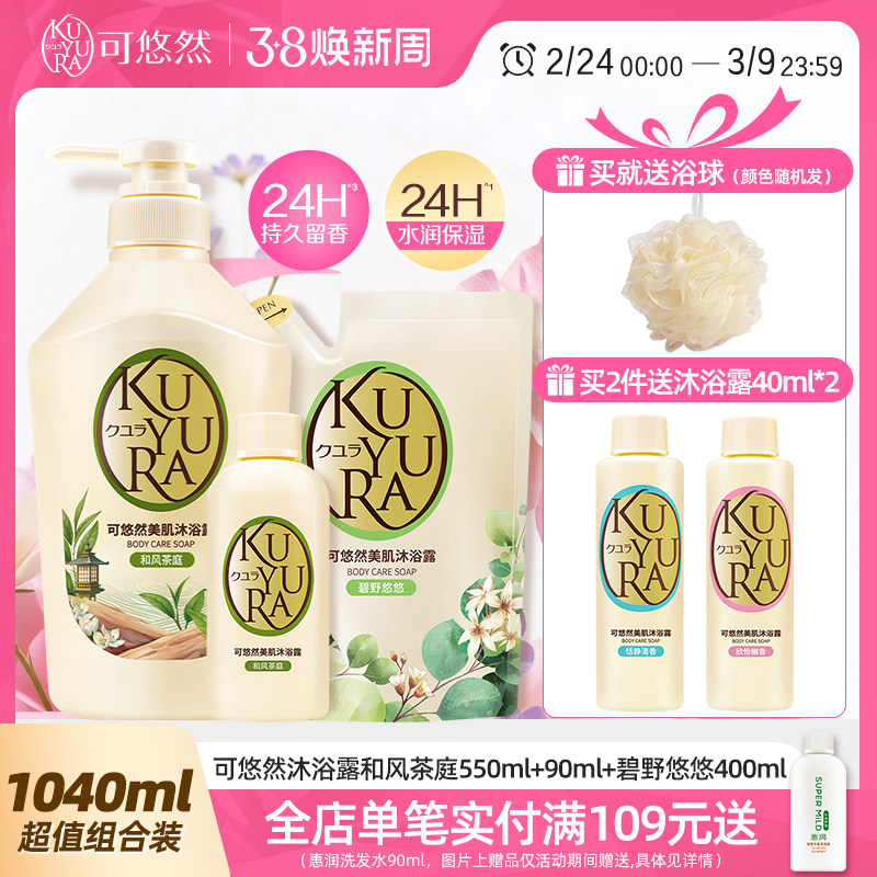 kuyura/可悠然美肌沐浴露和风茶庭550ml*2木质茶香滋润持久留香