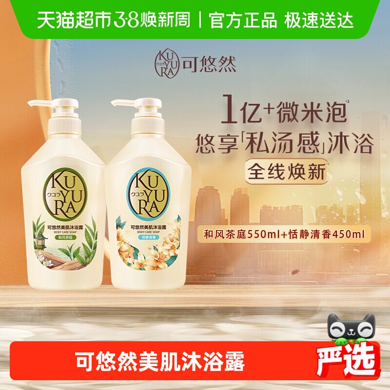 可悠然美肌沐浴露和风茶庭+恬静清香550ml+450ml持久留香滋润清洁