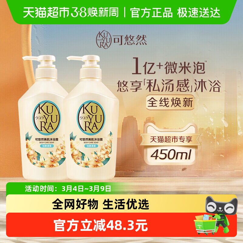 【下拉享限时限量优惠】可悠然美肌沐浴露欣怡+恬静450ml*2瓶