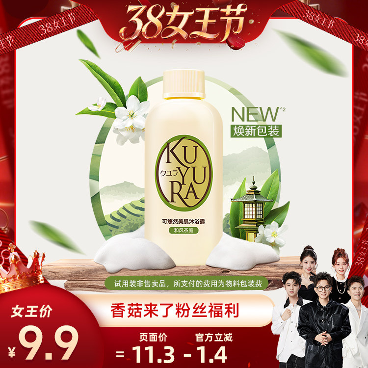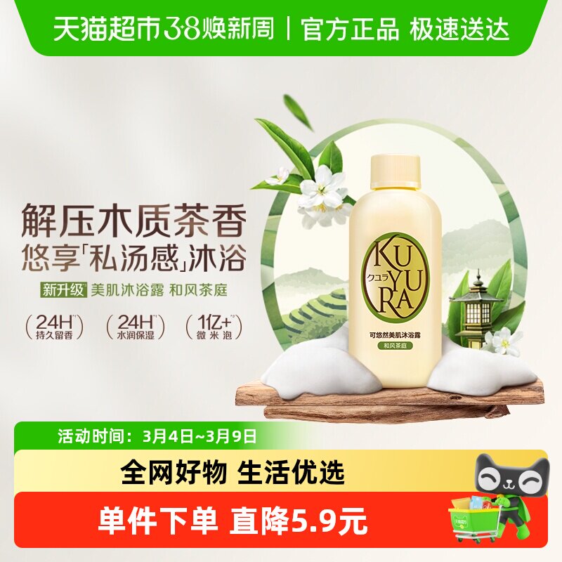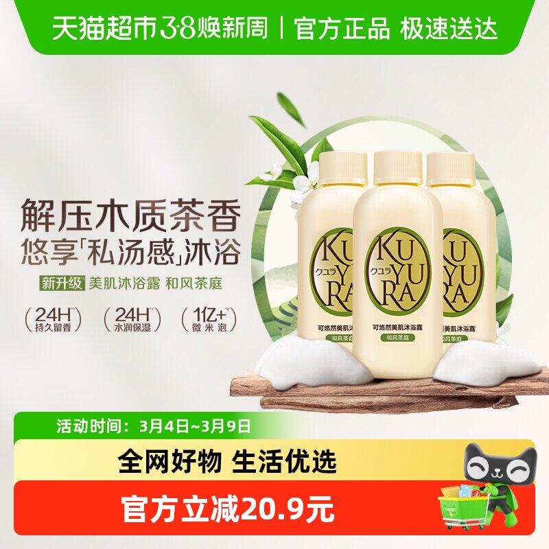 kuyura/可悠然美肌沐浴露和风茶庭木质茶香滋润保湿持久留香焕新
