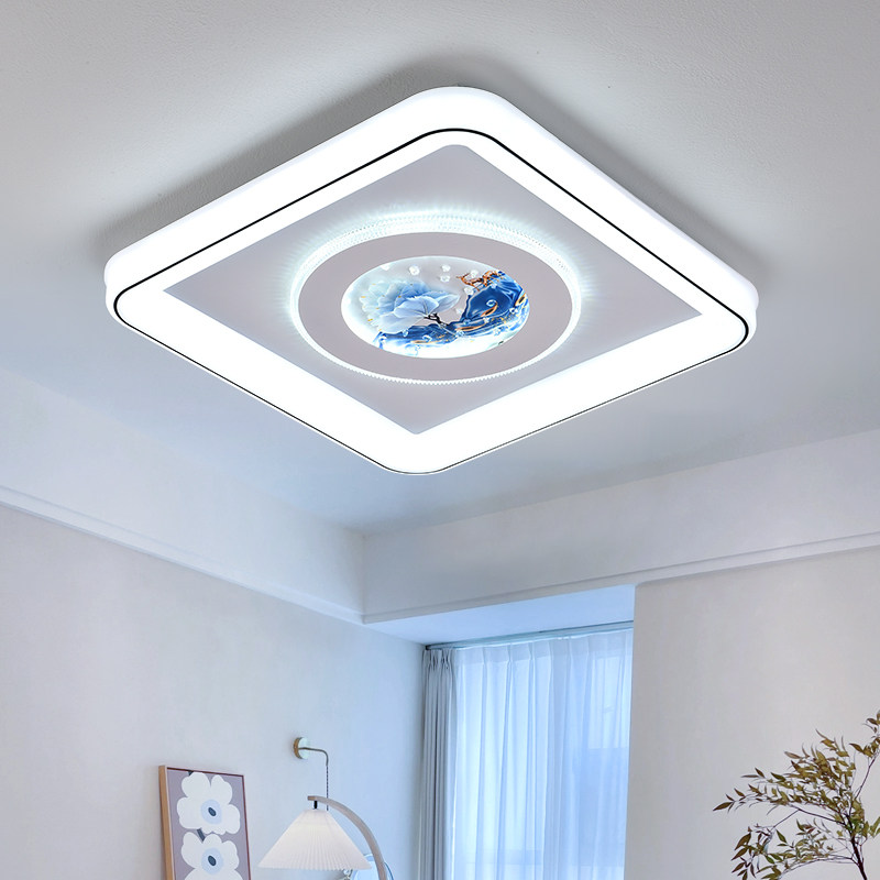 新款护眼房间灯圆形吸顶灯LED简约现代智能语音卧室灯方形餐客厅