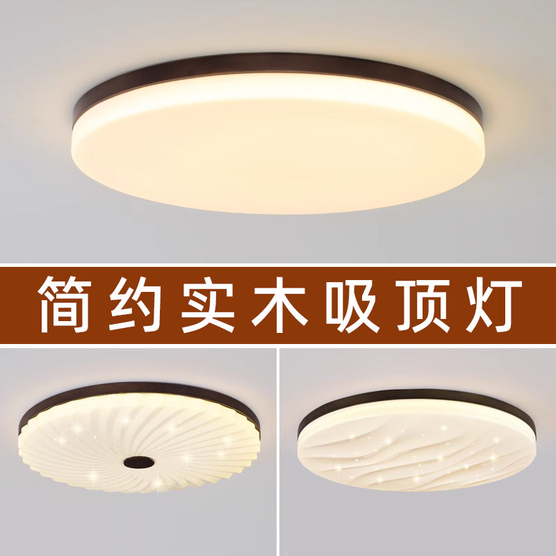新中式卧室灯房间灯圆形led吸顶灯简约北欧实木温馨书房阳台灯具