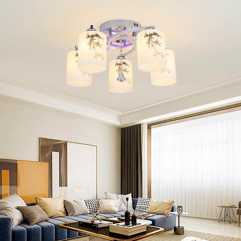 现代厅简CX6060约le房间灯圆形三头d五头卧室客灯餐厅书房玻璃吊