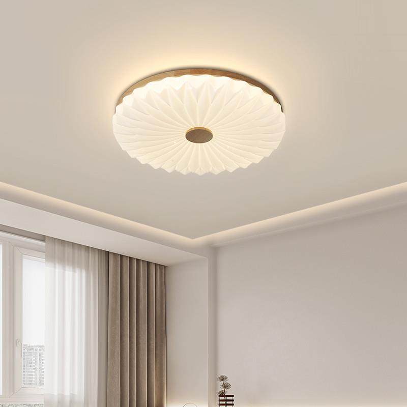 主卧室灯吸顶灯具现代简约房间灯圆形日式原木灯具中山灯具L271