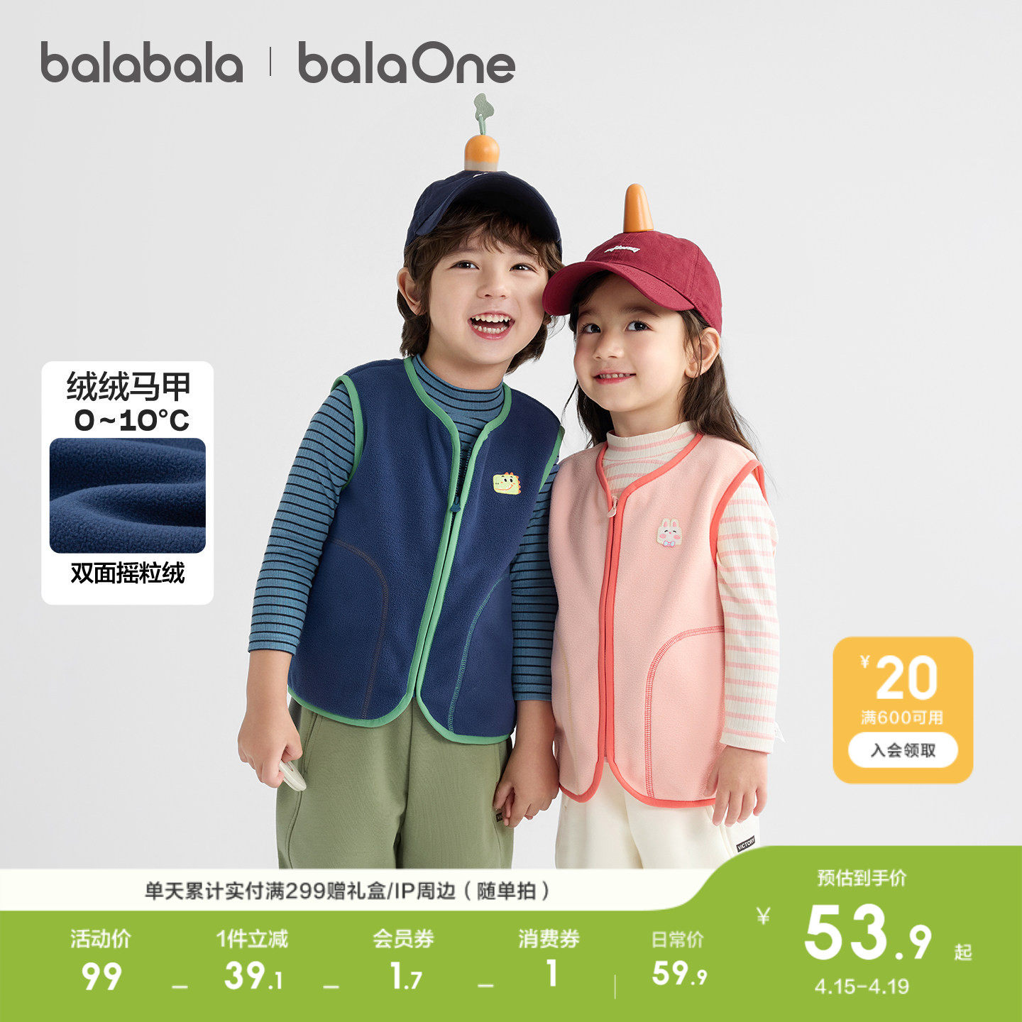 巴拉巴拉儿童马甲宝宝春秋装男童女童双面绒背心加绒保暖外穿上衣