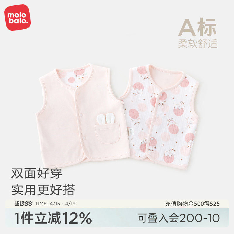 【两面穿】麦拉贝拉婴幼儿马甲纯棉春秋宝宝坎肩女孩衣服保暖背心