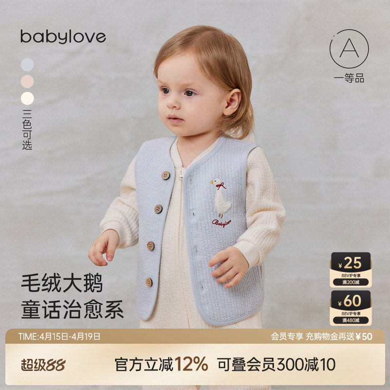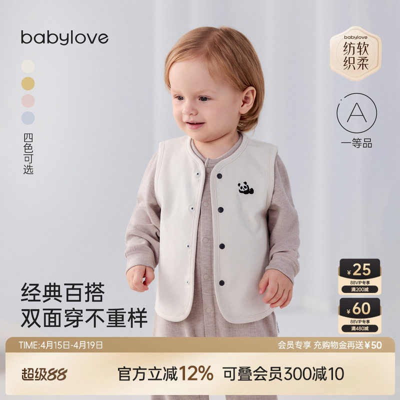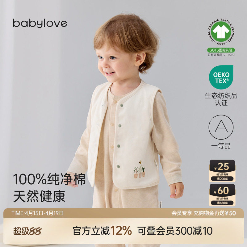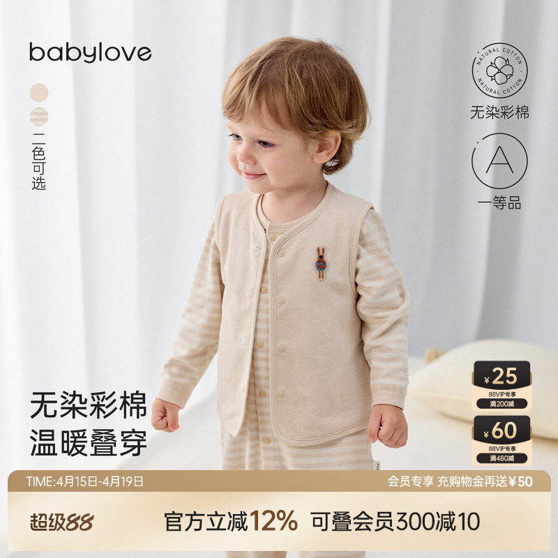 babylove婴儿马甲春秋纯棉外穿上衣男女宝宝马夹彩棉简约百搭背心