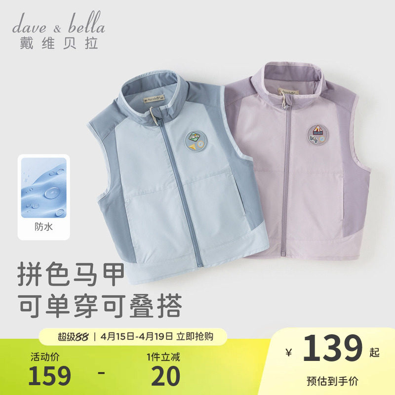 戴维贝拉儿童防泼水马甲男童2026新款户外背心女宝宝春装上衣A类
