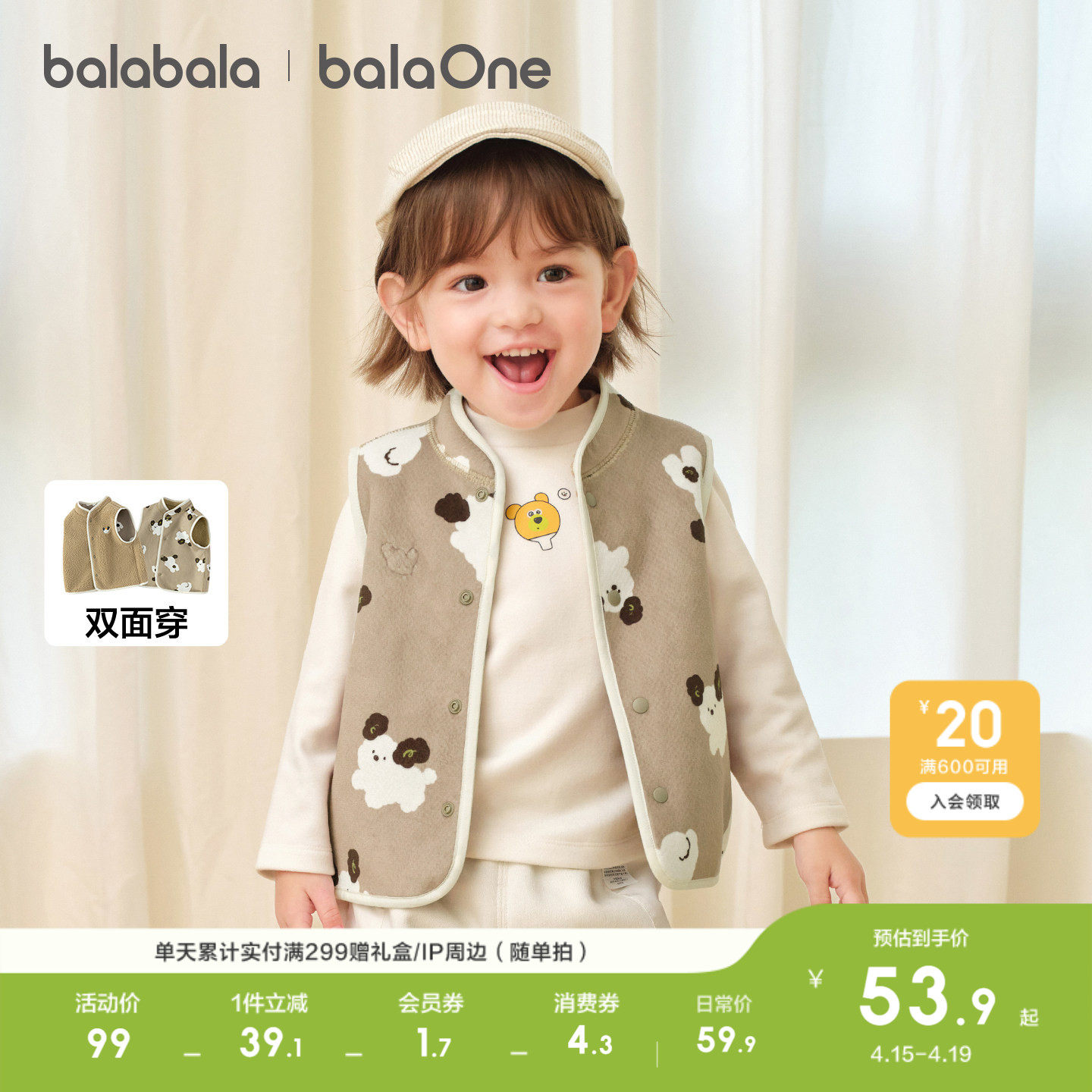 巴拉巴拉婴儿宝宝马甲女童背心男童双面穿儿童2026春装新款童装小