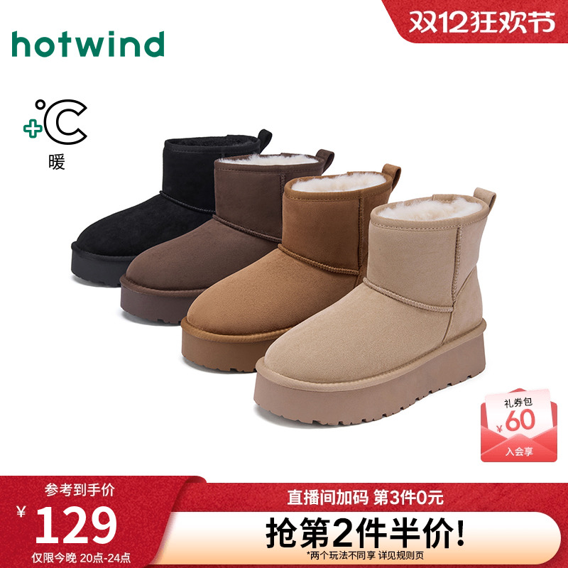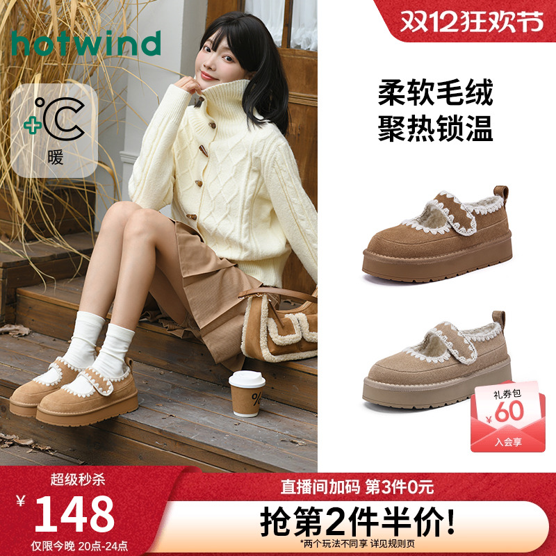 热风厚底雪地靴女鞋2025年冬季新款毛绒短筒靴棕色毛毛鞋复古鞋子