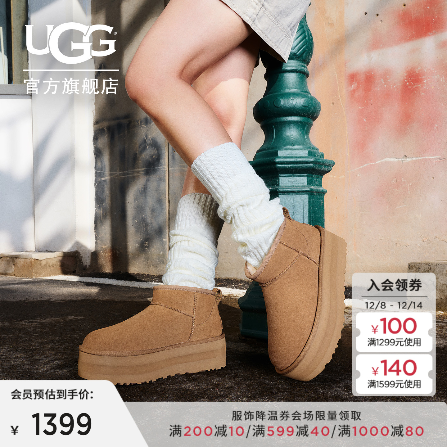 UGG秋季女士舒适时尚经典迷你纯色厚底保暖休闲短筒雪地靴1135092