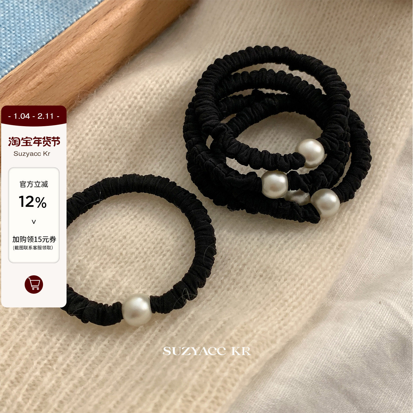 SuzyAcc Kr韩国东大门进口简约基础款布艺仿珍珠皮筋百搭发圈头绳