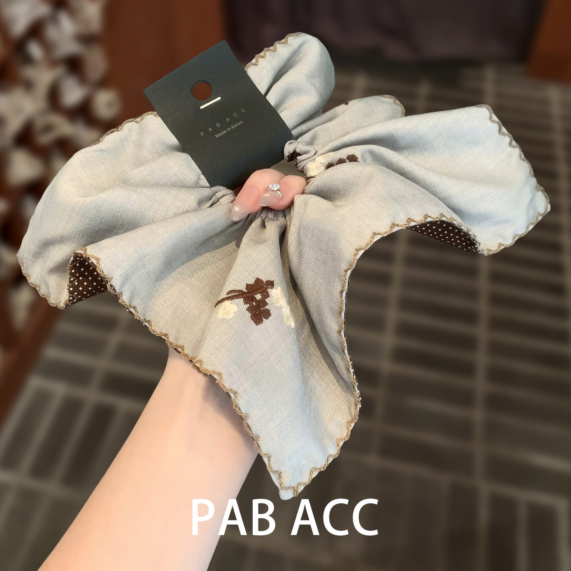 韩国复古百搭刺绣花朵波点AB面方巾发圈文艺甜美高级感头绳橡皮筋