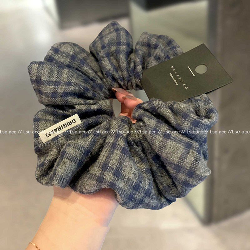 韩国小众秋冬学院毛呢撞色格纹大肠发圈英伦风发绳橡皮筋百搭头饰