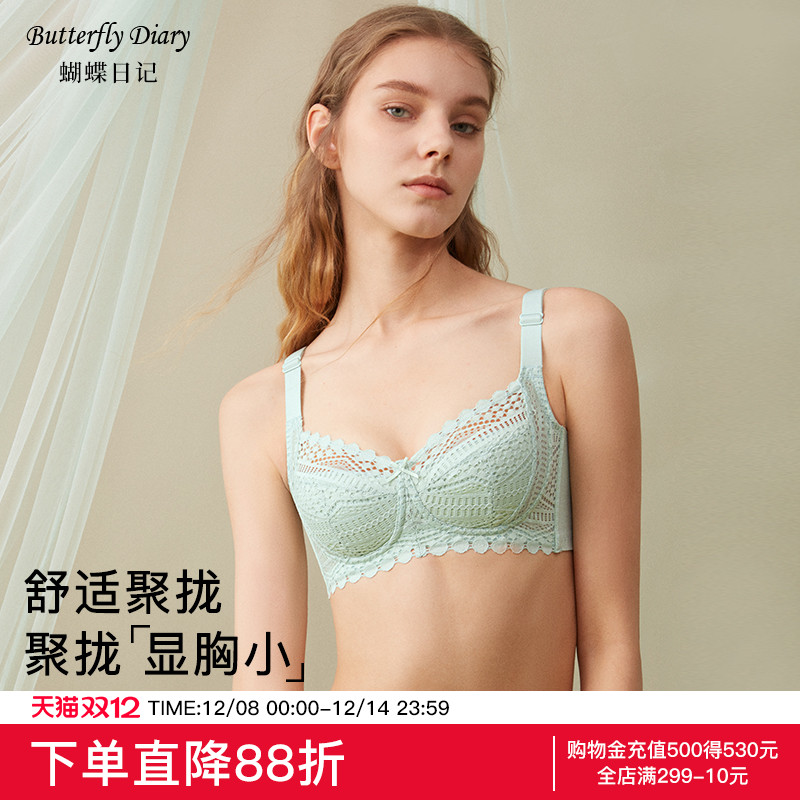 蝴蝶日记乳胶内衣女超薄款大胸显小无钢圈无海绵文胸聚拢上托胸罩