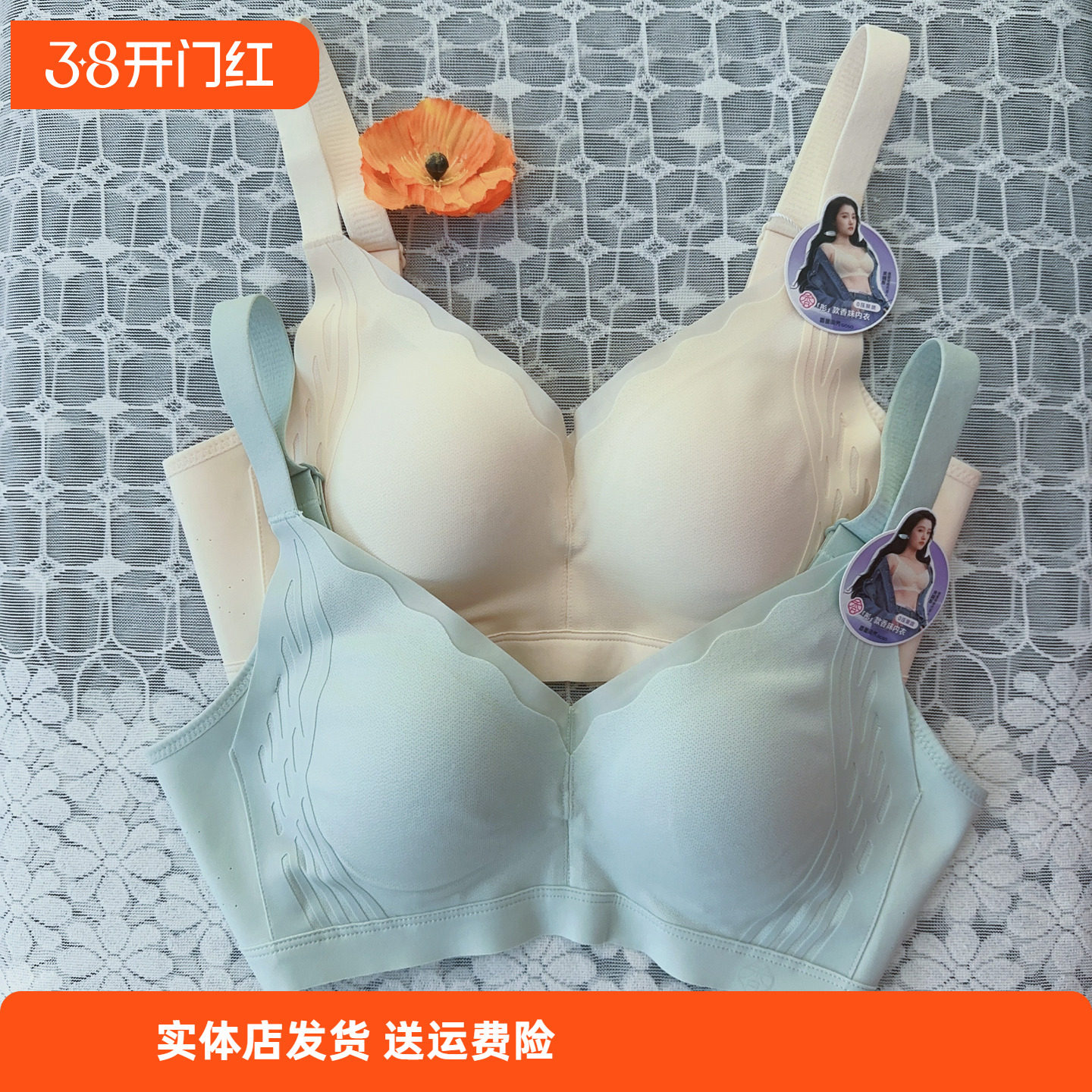 - 一片式聚拢无痕无钢圈文胸