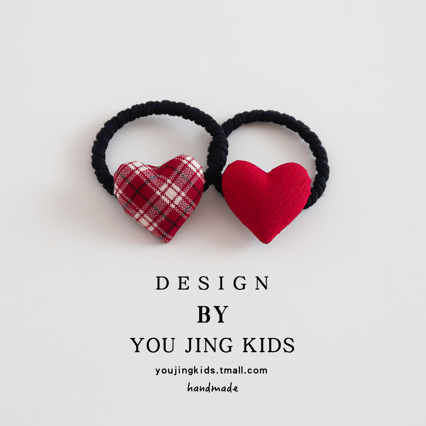 儿童红色爱心发圈格子洋气女孩发绳皮筋女童高弹头绳复古简约头饰