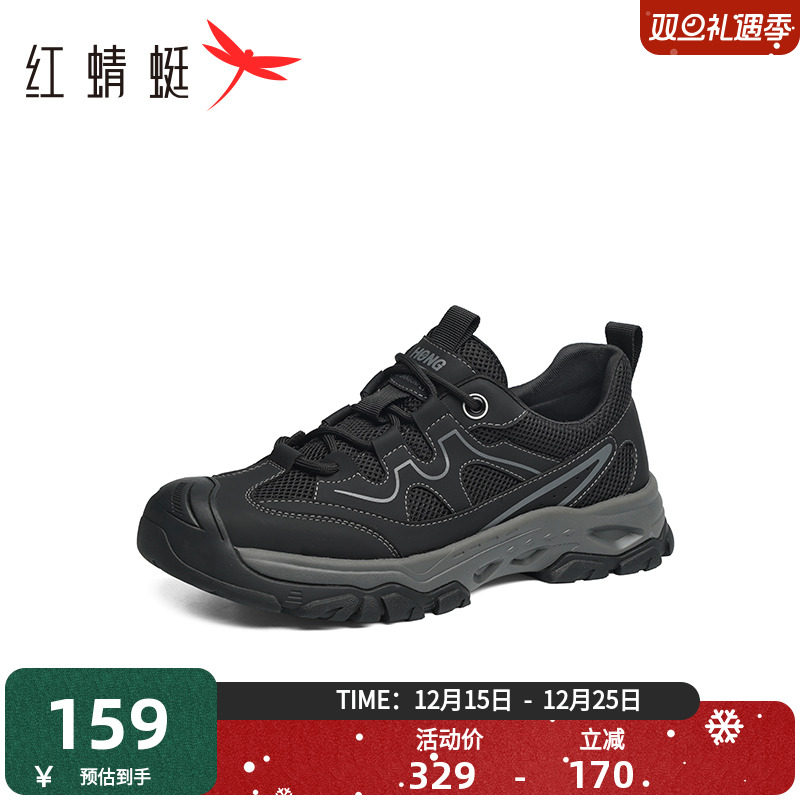 红蜻蜓户外休闲鞋2025夏季新款男鞋网面透气男生鞋子老爹运动鞋男