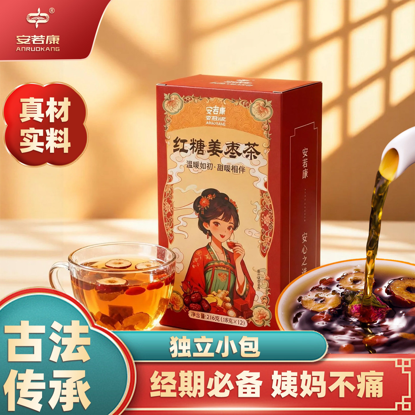 红糖姜枣茶独立包装盒装暖宫驱寒大姨妈量少痛经黑糖姜枣茶气血茶