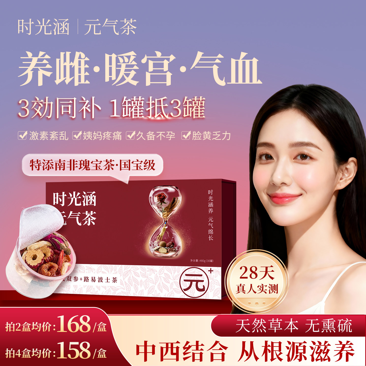 备孕养生茶多囊卵巢综合征调理备孕茶女生补气养血调理宫寒暖宫茶