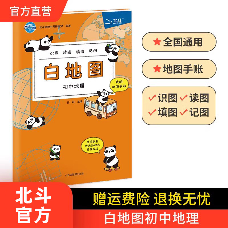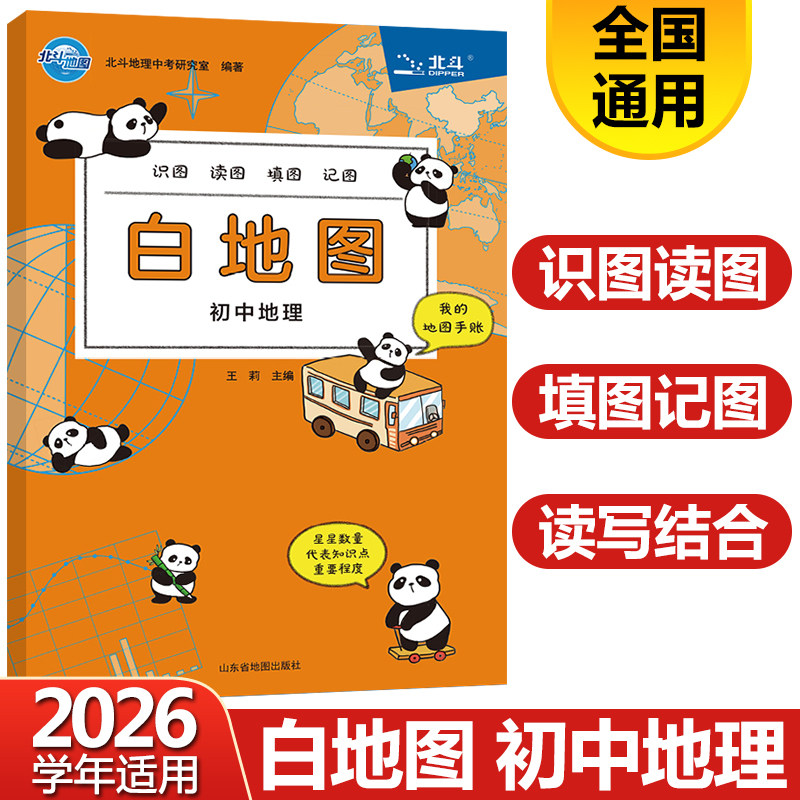 【北斗官方】北斗地图白地图 填图地图手账 初中地理教辅资料 地理学习知识大全 中学地理会考试资料