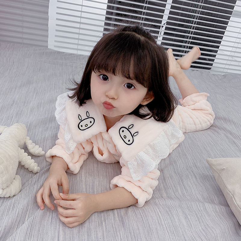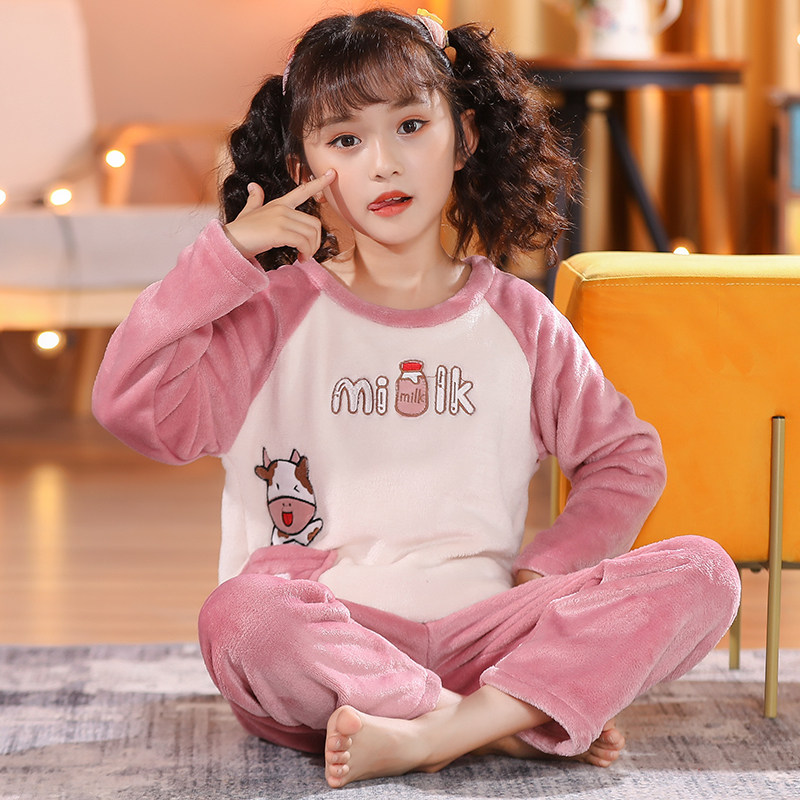 女童睡衣秋冬款法兰绒宝宝加绒加厚女孩珊瑚绒套装冬季儿童家居服