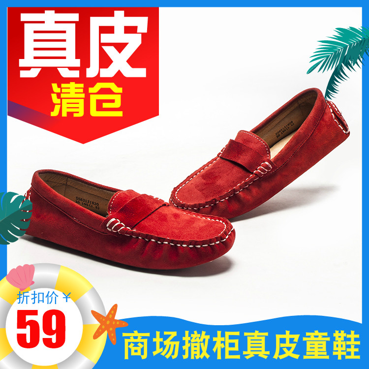 儿童真皮豆豆乐福鞋子红色羊反绒单鞋男女孩套脚平跟软SS63131820