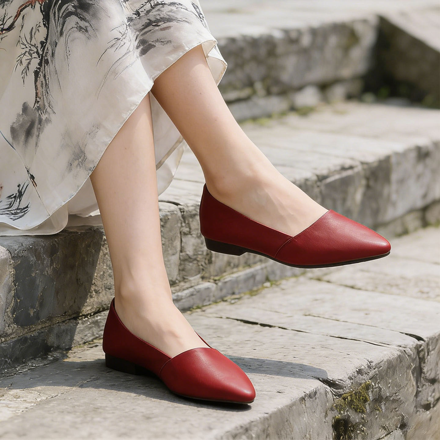 诺奇琳-众平底单鞋女春仙女配裙子红色尖头晚晚鞋低平跟单鞋326-6